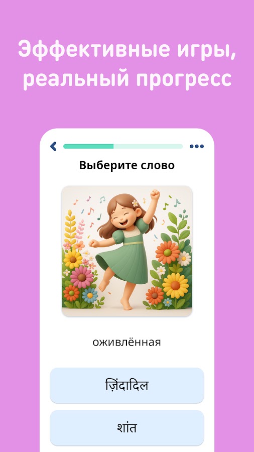 Мы подбираем контент под возраст пользователя. Теперь и взрослый, и ребёнок может учить хинди и развлекаться.