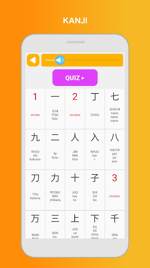Играйте в весёлые игры и викторины, чтобы повысить уровень знаний хираганы, катаканы и кандзи.