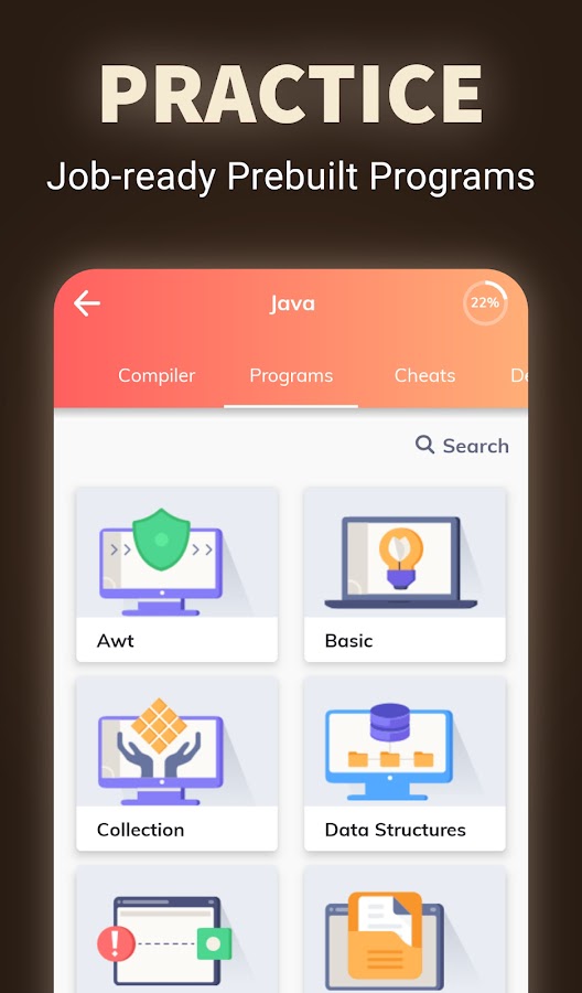 С приложением «Learn Java Programming» вы можете сделать изучение кода простым и увлекательным. Вот функции, которые сделали бы нас вашим единственным выбором для изучения языка программирования Java —