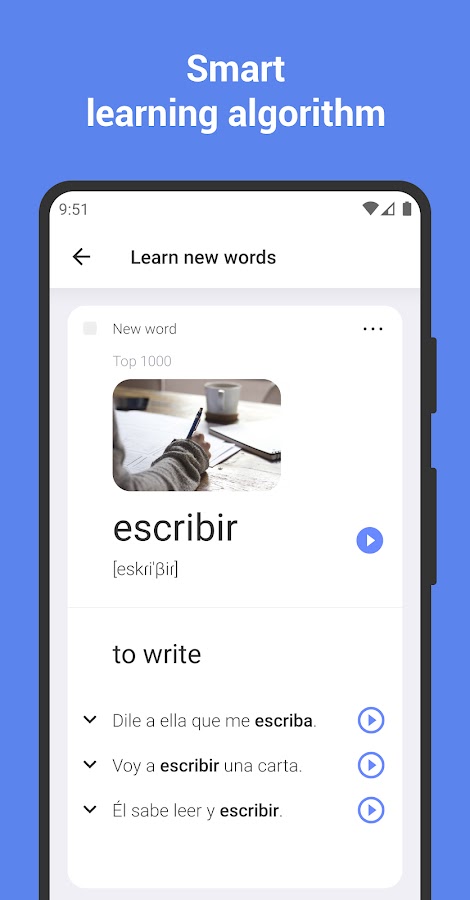 • Примеры употребления слов и умный алгоритм делают наш самоучитель испанского языка максимально эффективным. Запоминание слов происходит быстро и надолго.