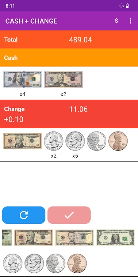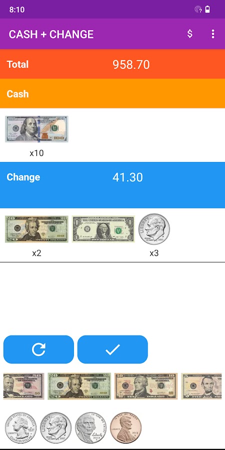 Это приложение позволяет попрактиковаться в расчете сдачи на деньги.
