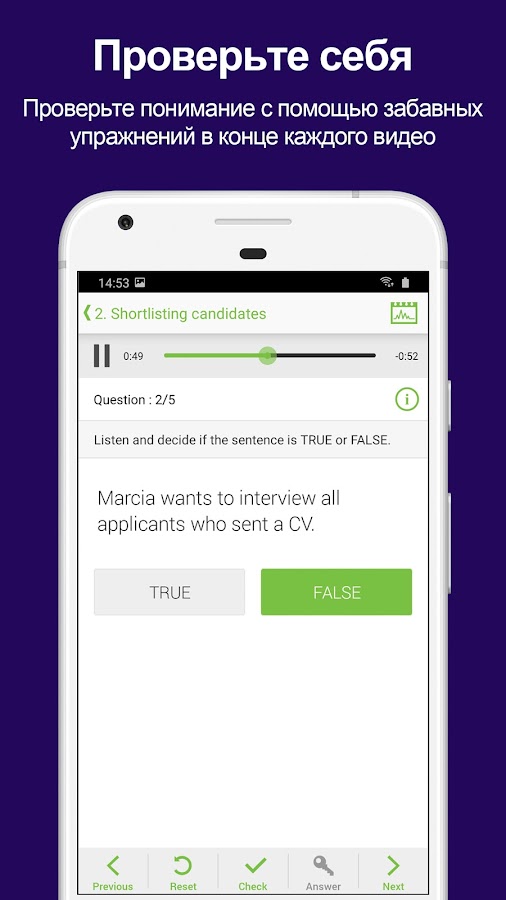* Простые упражнения для каждого эпизода и экран прогресса, чтобы вы могли отслеживать свои успехи.