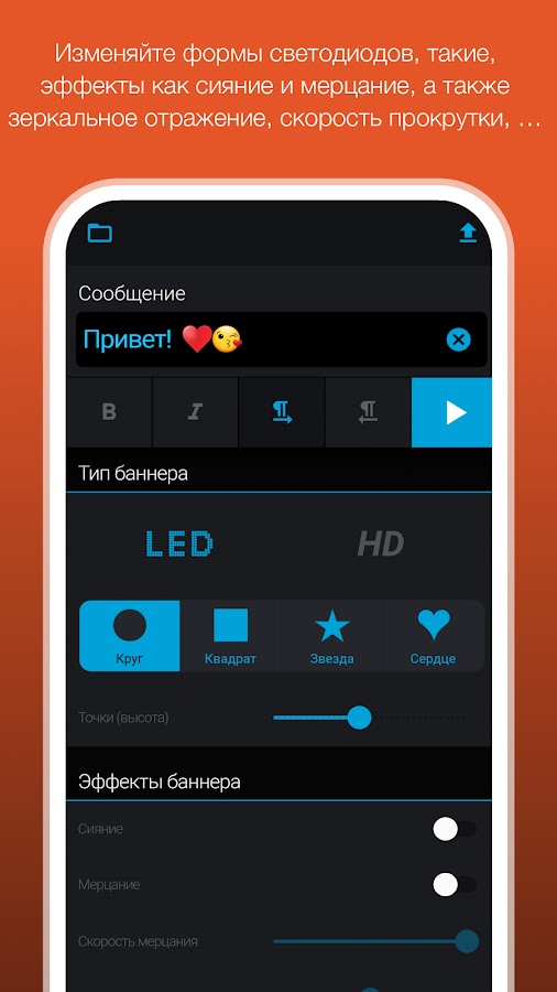 Попробуйте сейчас! Никакое другое приложение, работающее с LED-баннерами, не предлагает этих функций!