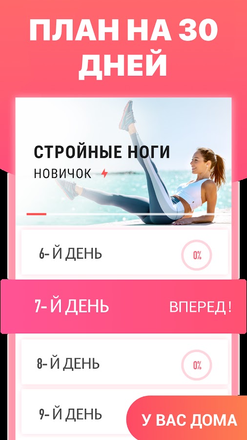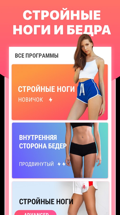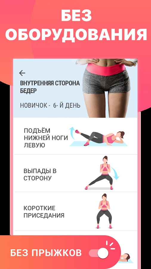 Это приложение предлагает множество планов тренировок, помогающих сделать ноги стройными, сжечь внутренний жир на бедрах и улучшить пропорции тела. Тратьте не более 15 минут в день, чтобы сжечь жир и избавиться от целлюлита на ногах..