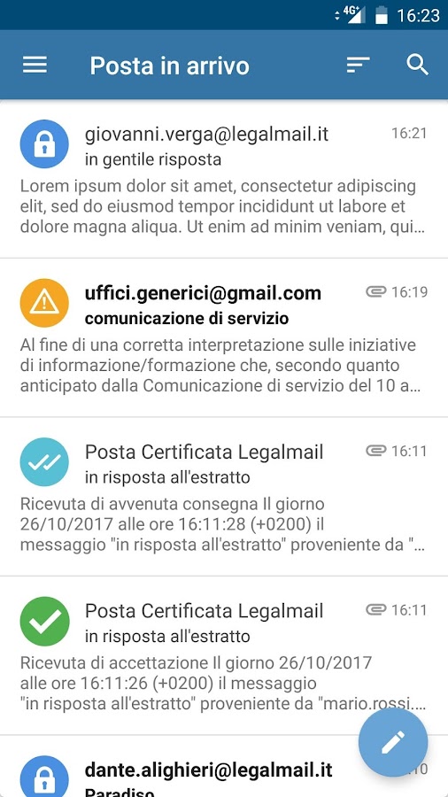 • Легко писать и отправлять сообщения PEC с юридической силой.