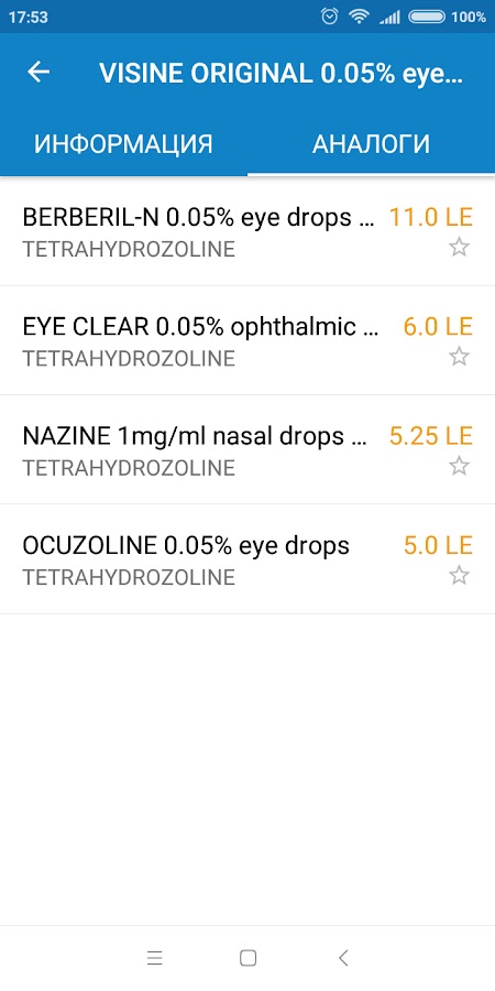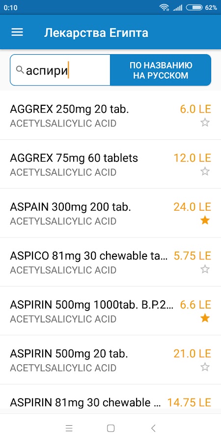 Каждое лекарство содержит описание, цену в египетских фунтах, способы применения и другую информацию.
