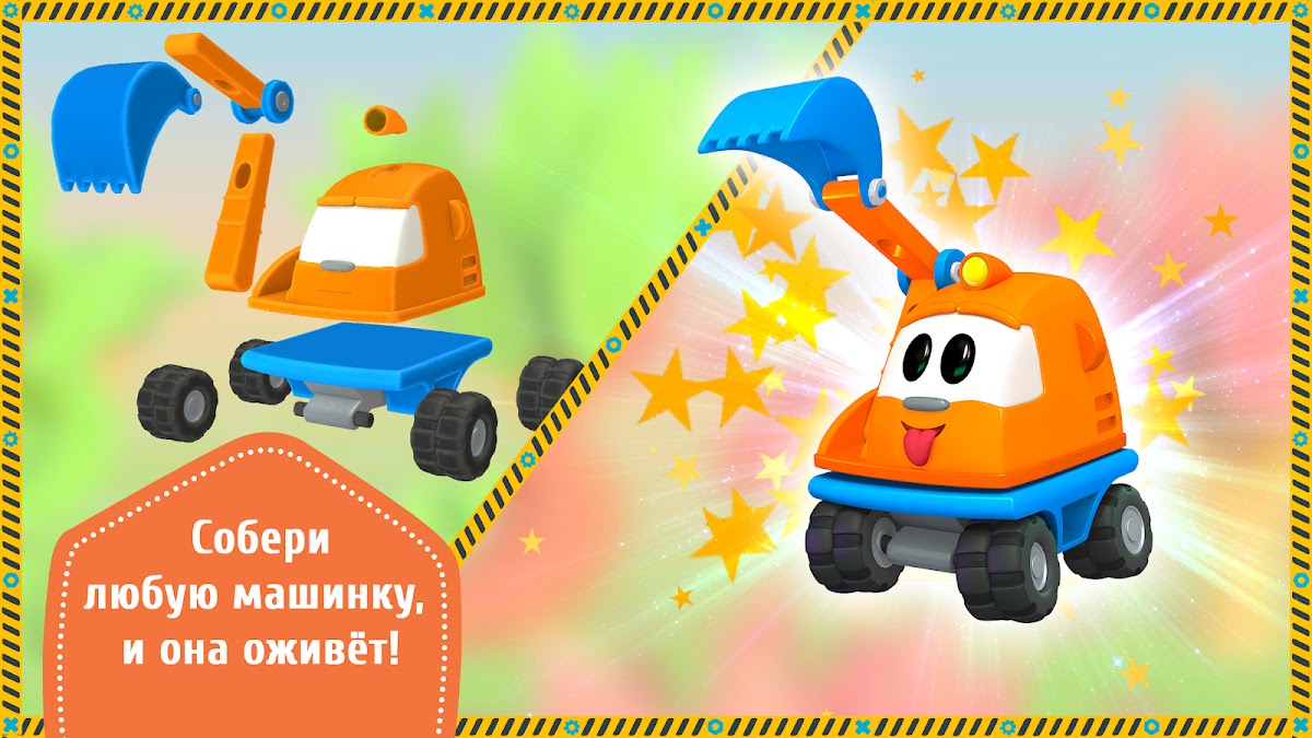 Собирайте машинки вместе с Грузовичком Лёвой. Сделать это очень просто: перетяните детали в центр в нужном порядке. Ошибиться или проиграть нельзя! После сборки каждая из машинок оживет и с помощью ребенка будет выполнять важные задачи в красочном мире.