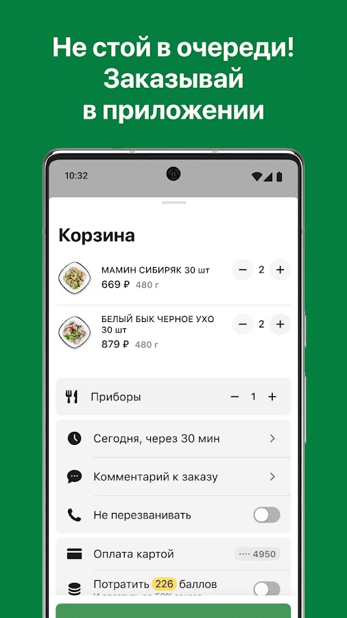 Скачай наше приложение и заказывай любимые блюда и полуфабрикаты быстро, просто и выгодно.