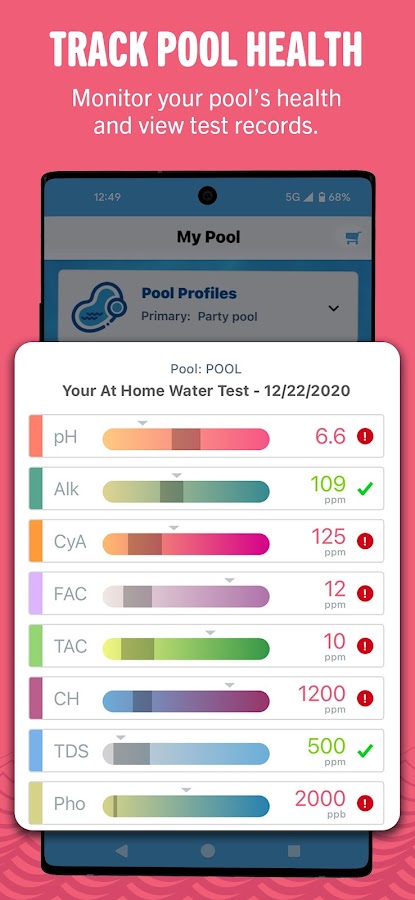 Отслеживайте состояние бассейна: в любое время получите доступ к истории испытаний воды в магазине и дома.