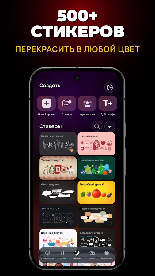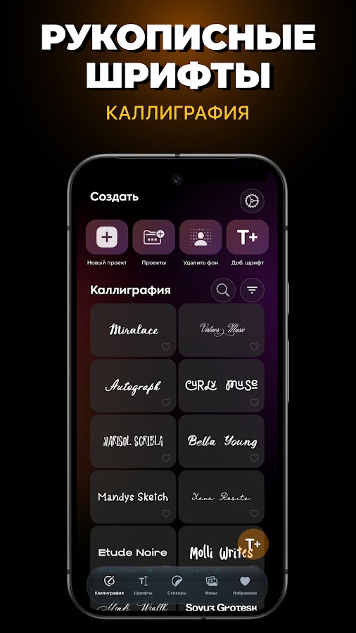• Сотни шрифтов: рукописные, каллиграфические, декоративные