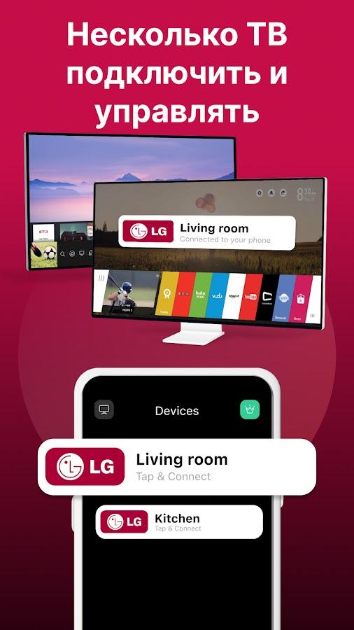 — Добавление нескольких телевизоров в приложение и управлении ими с одного места.