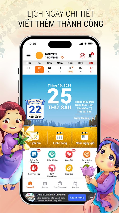 «Лунный и солнечный календарь на 2026 год — гороскоп на год Лошади» — это бесплатное, незаменимое приложение-календарь для вьетнамцев!