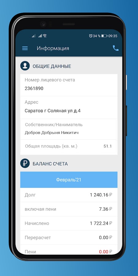 Возможность просмотреть общие данные и баланс счета;