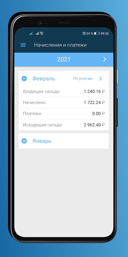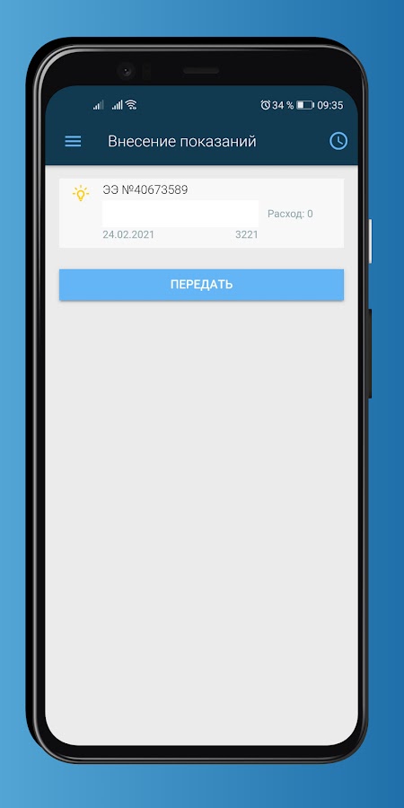 Возможность передачи показаний по счетчикам или просмотреть переданные ранее показания;