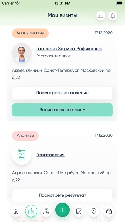 2. Получения рекомендаций по посещению специалистов;