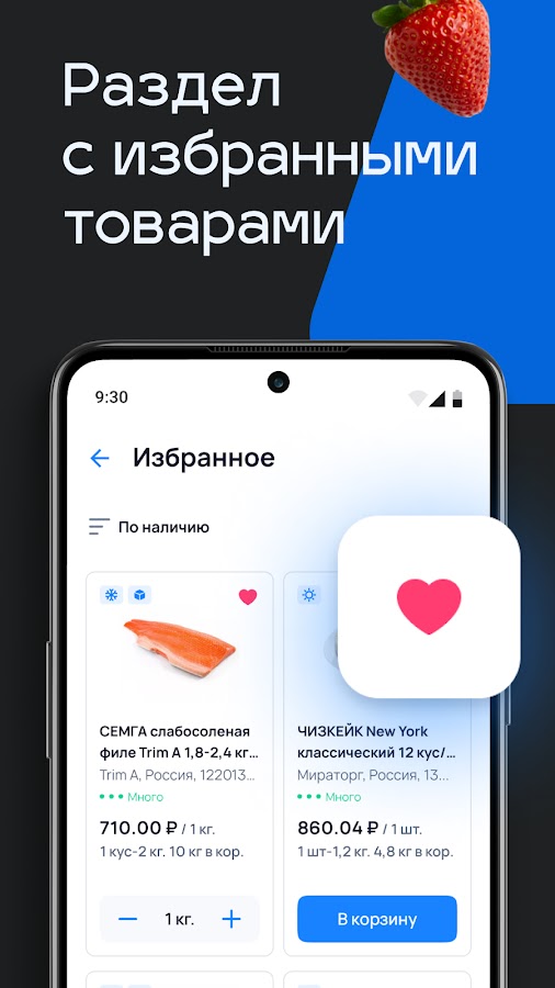 В карточке товара — вся нужная информация: производитель, данные о составе и содержании БЖУ, остатки на складах, параметры упаковки, режим и срок хранения. Добавьте товар в корзину, выберите адрес, дату и время доставки. Остальное за нами.