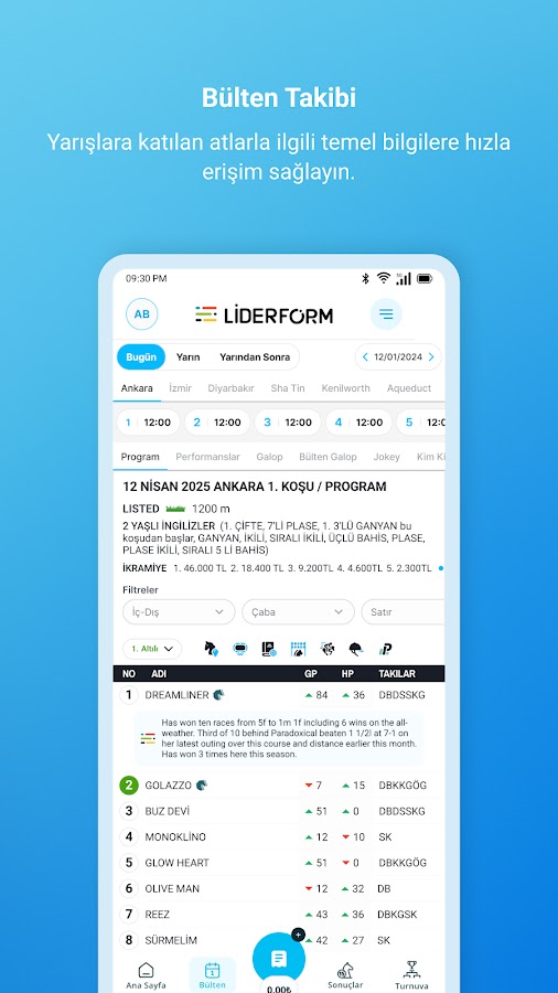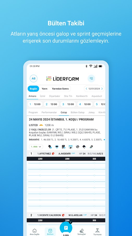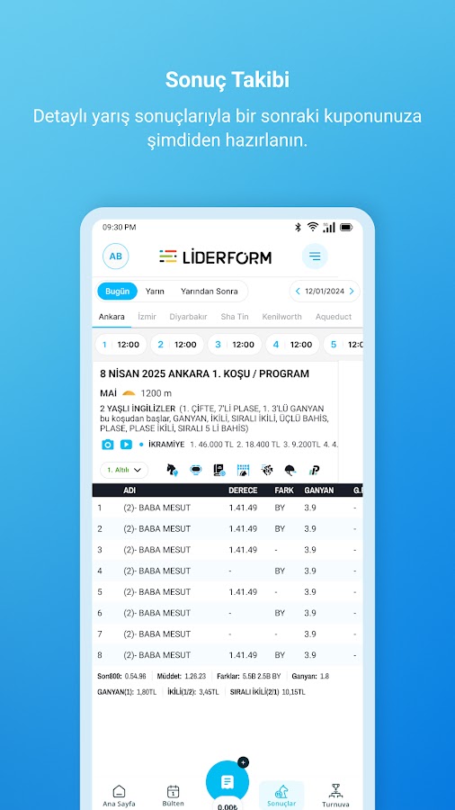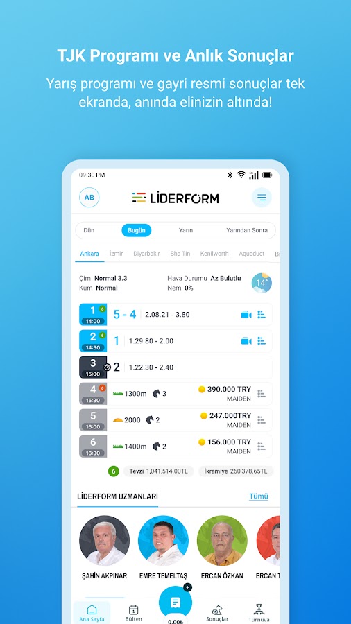 Анализ, советы по гонкам, информация о ставках, последние новости с ипподромов, вы можете получить доступ к любой информации, которая вам нужна из нашей системы, и направить нужные вам уведомления на ваше мобильное устройство. Вы можете участвовать в ежедневных соревнованиях с онлайн-купонами, наблюдать за опытными игроками, участвовать в турнирах и выигрывать призы, заполняя виртуальные ваучеры для реальных результатов гонок.