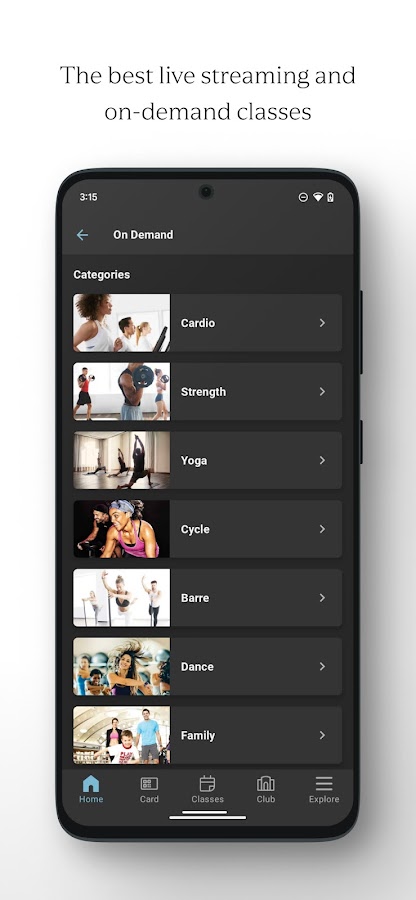 • Смотрите неограниченное количество онлайн-занятий по запросу и в прямом эфире с ведущими инструкторами, включая силовые тренировки, кардио, йогу, балет, высокоинтенсивные интервальные тренировки, сайклинг и многое другое.