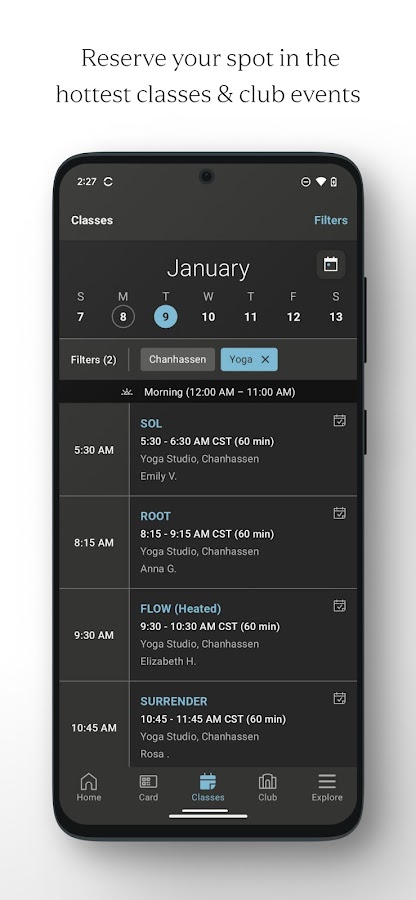 • Консьерж, который вас понимает. Найдите занятия, забронируйте корты, запишитесь на приём и откройте для себя возможности, персонализированные с учётом ваших привычек, расписания и клубных мероприятий.