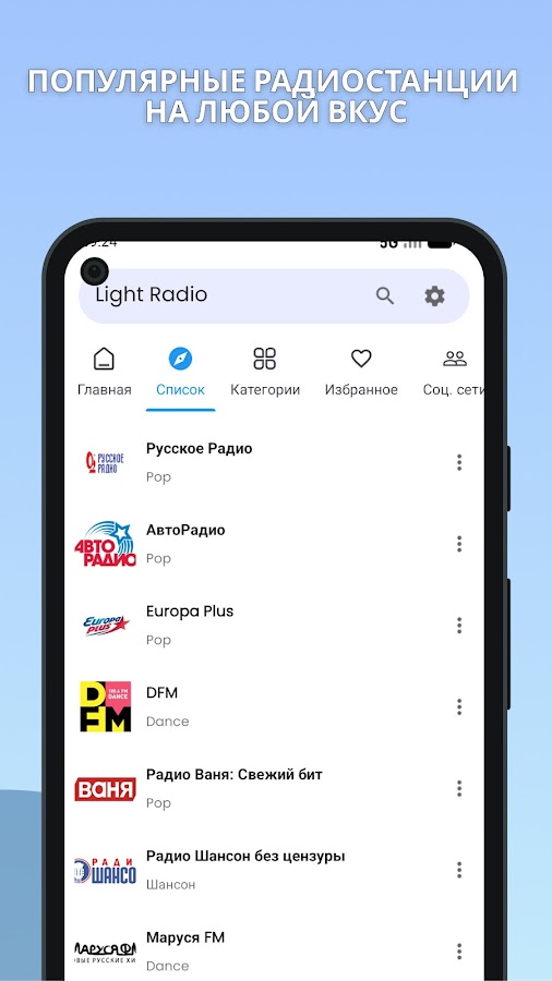 Скачайте приложение Light Radio — радио онлайн для Android бесплатно - последняя версия (5.9.1) уже доступна для установки на ваш телефон или планшет.