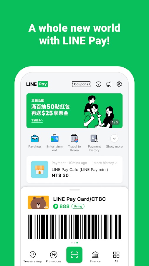 — Найдите преимущества LINE Pay рядом с вами с помощью местоположения на карте, ключевых слов и всплывающих меток. Вам также будут доступны различные купоны!