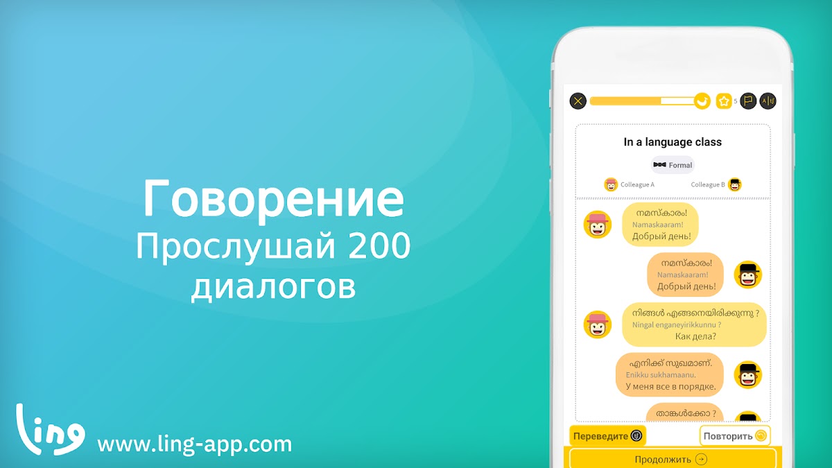 Это неважно новичок ли вы, который не знает ни одного слова на Малаялам языке, и хотите изучить основы языка, или вы довольно уверенно разговариваете и хотите говорить на более продвинутом уровне или же просто освежить свои знания — Линг поможет любому!