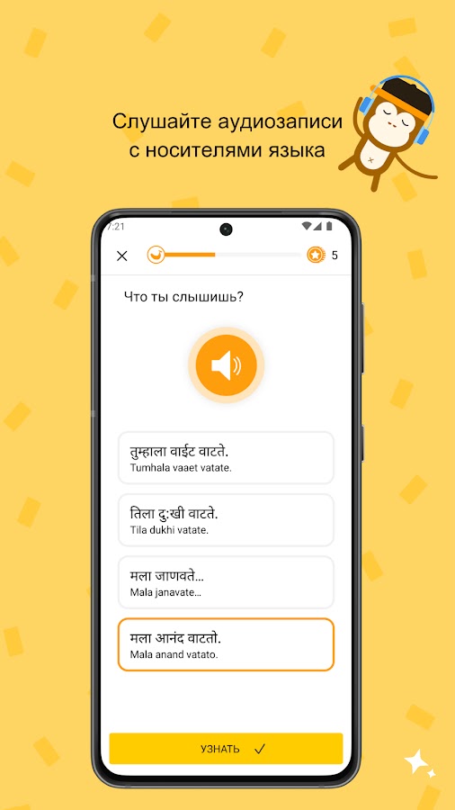 Традиционные уроки Маратхи языка могут быть скучными, однообразными и совсем не увлекательными. В Линге мы сделали процесс изучения языка веселым с помощью игр, задачек и опросов, чтобы научить вас читать, писать и говорить на Маратхи!