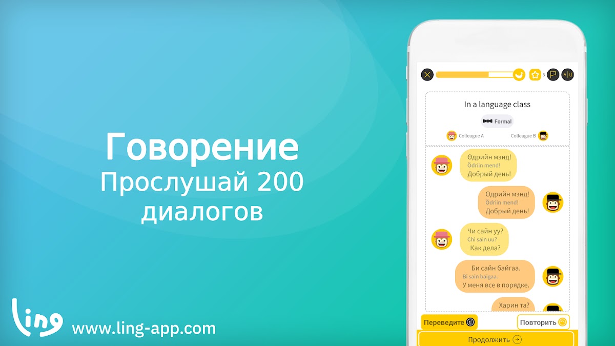 Это неважно новичок ли вы, который не знает ни одного слова на монгольский языке, и хотите изучить основы языка, или вы довольно уверенно разговариваете и хотите говорить на более продвинутом уровне или же просто освежить свои знания — Линг поможет любому!
