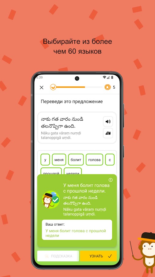 Традиционные уроки языка могут быть скучными, однообразными и совсем не увлекательными. В Линге мы сделали процесс изучения языка веселым с помощью головоломок, игр, задачек и опросов, чтобы научить вас читать, писать и говорить на !