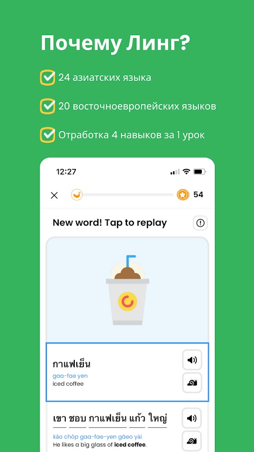 Изучайте тайский, тагальский, кхмерский, испанский, сербский и другие языки в приложении Ling! Хотите узнать, какие еще иностранные языки можно выучить? Полный список представлен ниже!