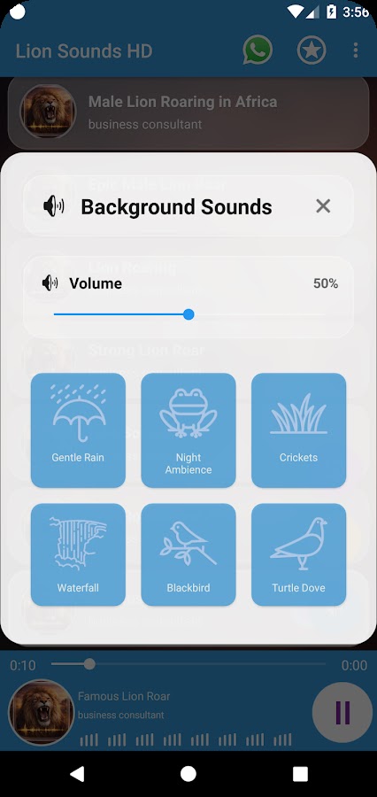 Скачайте приложение Lion Sounds HD для Android бесплатно - последняя версия (8) уже доступна для установки на ваш телефон или планшет.