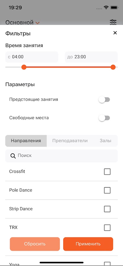 Внедрили гибкие фильтры для поиска занятий: занятия легко найти по времени, преподавателю или по записи без абонемента.