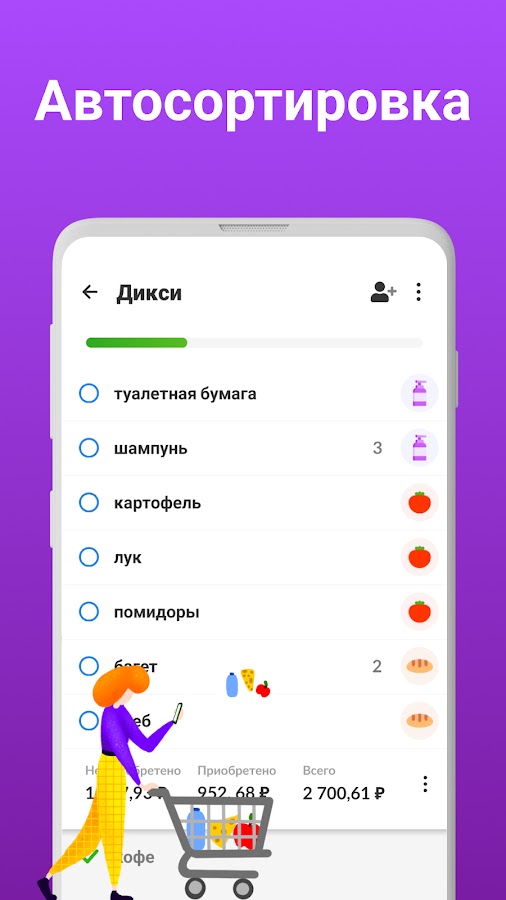 Сортировка продуктов — Продукты в Ваших списках сортируются по категориям, чтобы их было легче найти в магазине и быстрее завершить покупки.