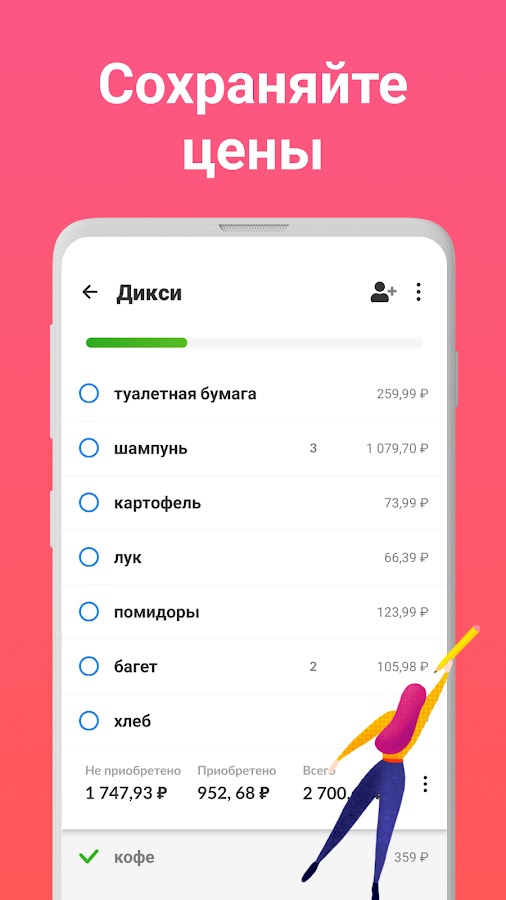 Планируйте покупки с самым популярным приложением для списка покупок в Google Play. Создавайте списки, делитесь ими и совершайте покупки вместе. Это лучший список покупок для всей семьи. Бесплатно!