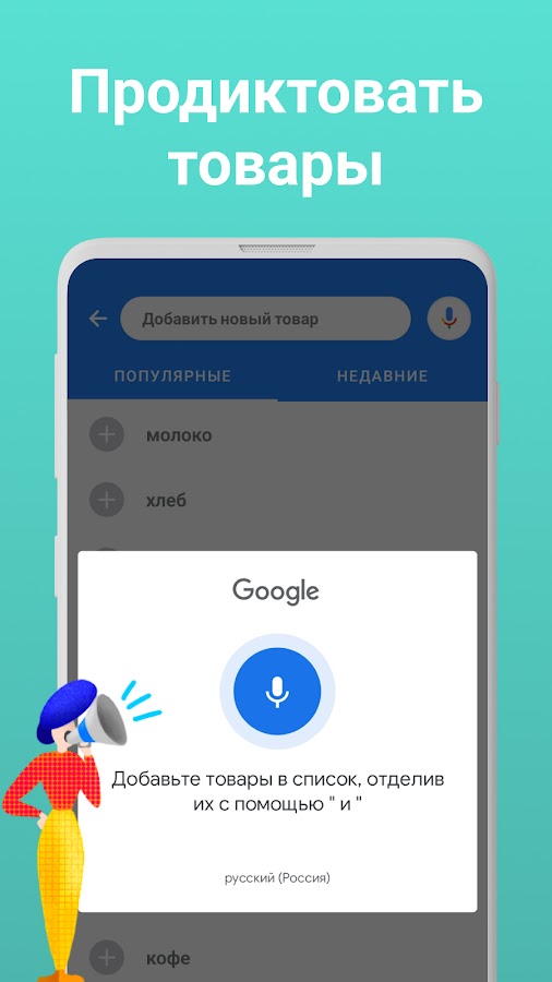 Голосовой ввод — Это самый быстрый способ создать список покупок. Listonic распознает Вашу речь, и Вы можете надиктовать весь список за один раз.