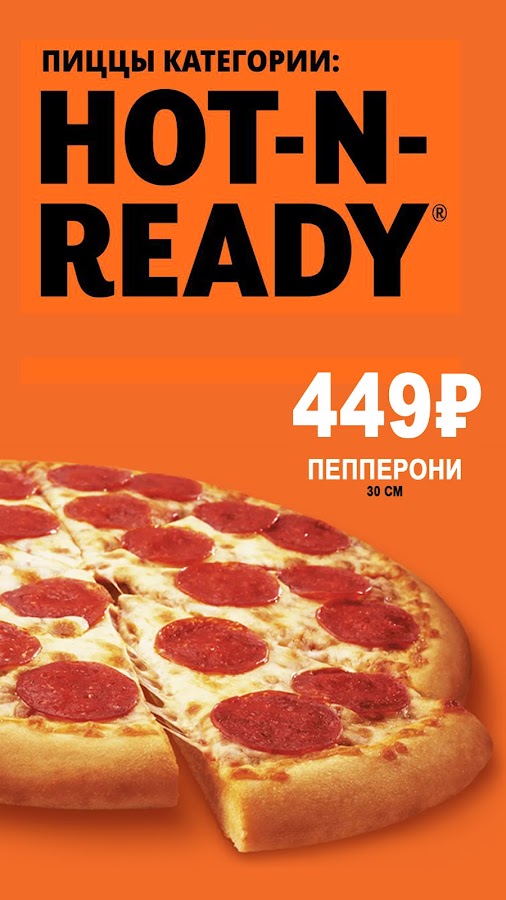 Наше Ноу-Хау – это система обслуживания Hot-n-Ready, позволяющая отправлять заказ на доставку менее чем за минуту. В сочетании с ограниченными зонами доставки это позволяет нам доставлять свежую горячую пиццу с невероятной быстротой!