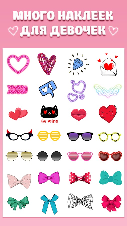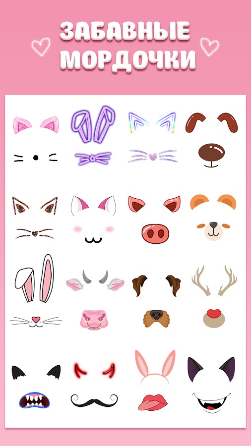 💕Эксклюзивные Красивые Маски для Лица: Это приложение для фото «Маски: Селфи Фото для Девочек» предлагает стикеры и бесплатные маски на лицо От пушистых ушек животных до блестящих бантиков и сердечек.