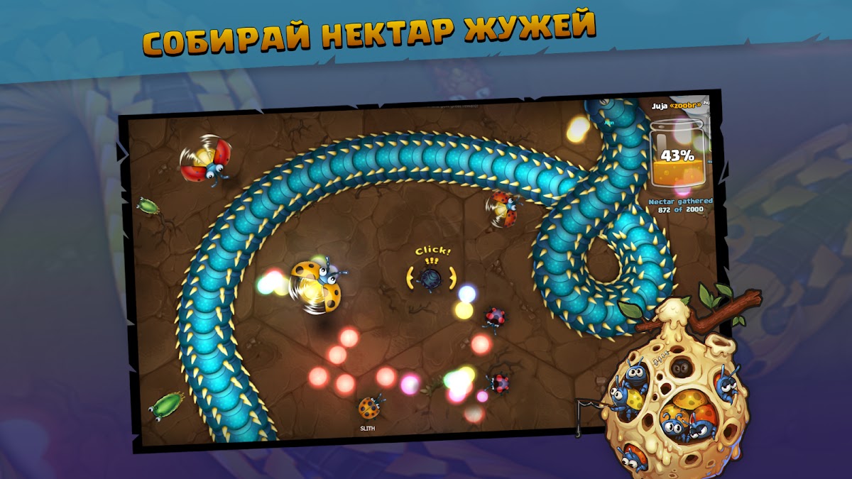 В Little Big Snake .io поражение не считается концом. Ты возрождаешься в виде жука Жужи и продолжаешь влиять на ход событий. Эта механика делает игру глубже, чем обычные змейки и игры про червей, добавляя возможность командного взаимодействия.