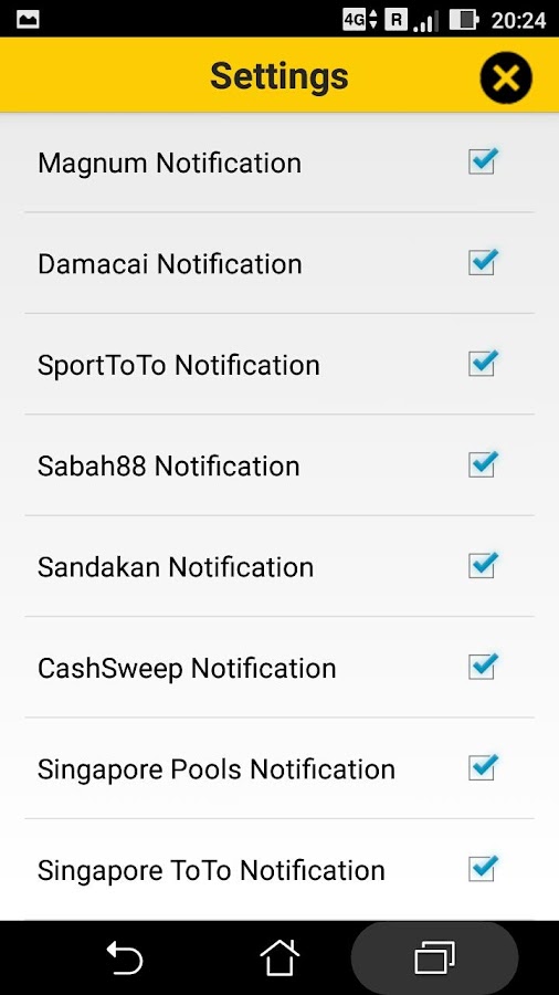 4. Вы можете выбрать Damacai, SportsToTo, Сабах, Сандакан, Cash развертку, Сингапур бассейны в navigativebar.
