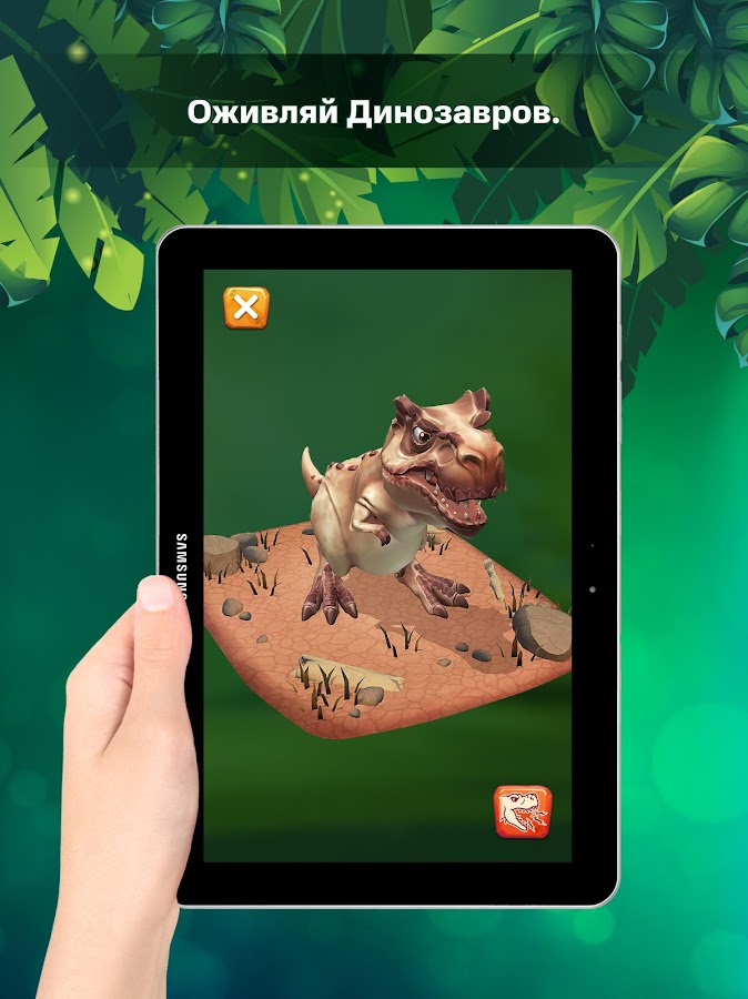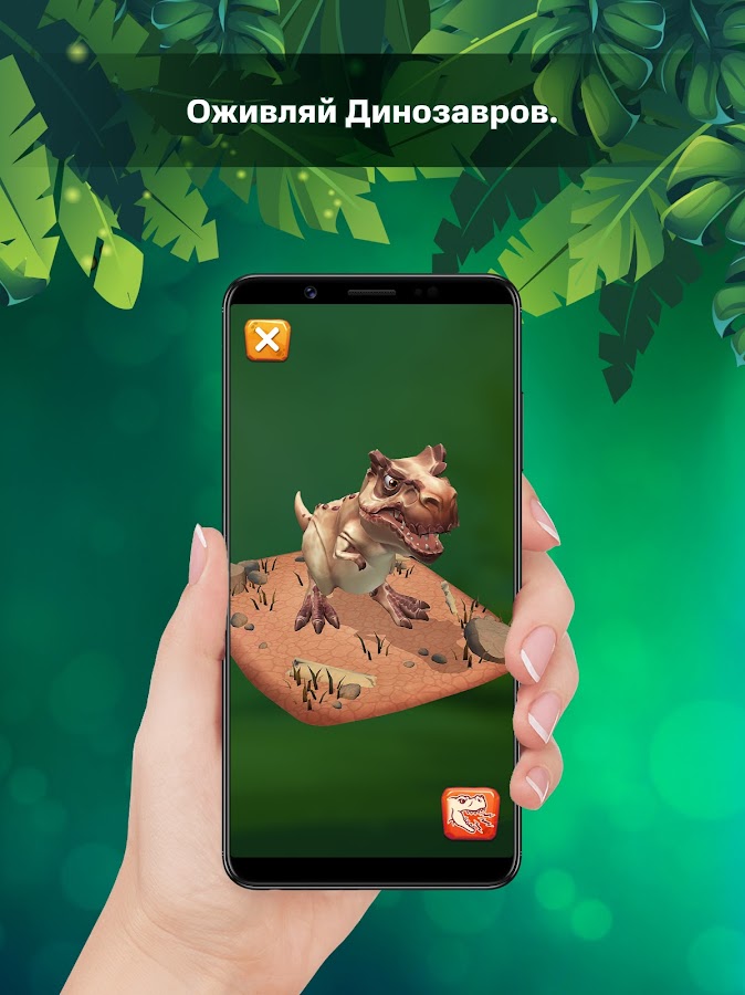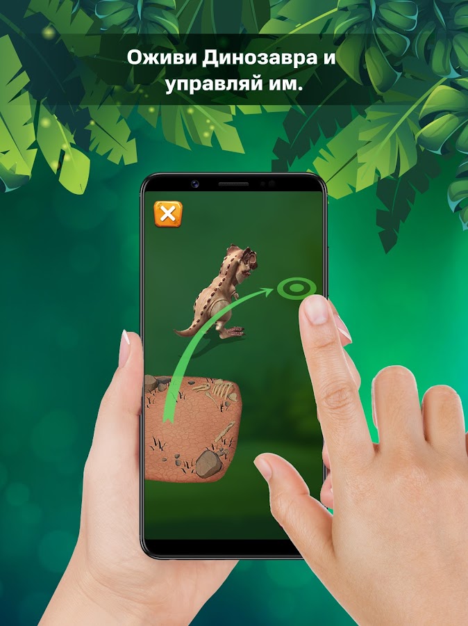 Не забудь, ты можешь управлять ожившим динозавром! Для этого оживи его на карточке, а затем коснись на экране того места, куда хочешь чтобы динозавр пришел и он сразу туда побежит!
