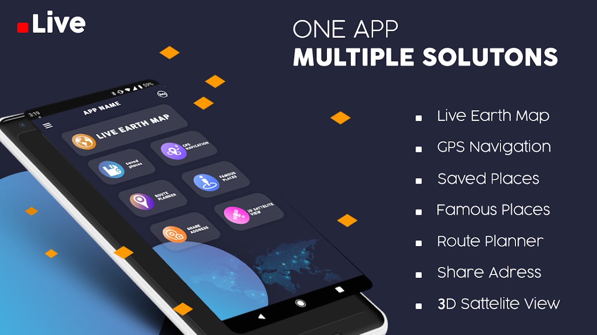 Исследуйте Живую Земную Карту и 3D Спутниковый Вид с Картой Мира, чтобы найти Известные Места. Живые Карты Земли и Спутниковый вид предоставлены Google Maps Api, чтобы предоставить вам лучшие карты GPS. Live Earth Map показывает карту мира 3D и 2D с ночным видением. Вы можете сделать снимок экрана текущего местоположения или желаемого местоположения GPS с мобильного телефона, чтобы отправить друзьям и семье. На карте Live Earth есть функция «Поделиться адресом», которая используется для обмена широтой и долготой с адресом улицы. Сохраненные места также являются лучшей особенностью приложения Live Earth Map — World Map 3D, приложение Satellite View. Теперь вы можете сохранять и перемещаться по местам назначения и отправлять их другим пользователям. Все в одном многофункциональном приложении GPS.