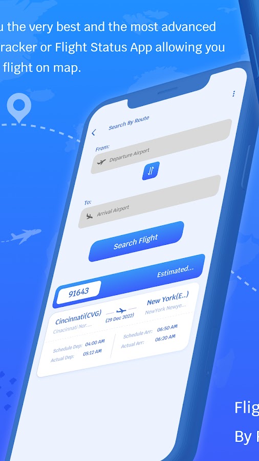 Отслеживание полетов — это универсальное приложение для поиска статуса рейса по номеру рейса и отслеживания информации о рейсе в режиме реального времени. Он предоставляет самую последнюю информацию о любом внутреннем или международном рейсе, включая терминал аэропорта и место выхода на посадку, задержки и отмены.