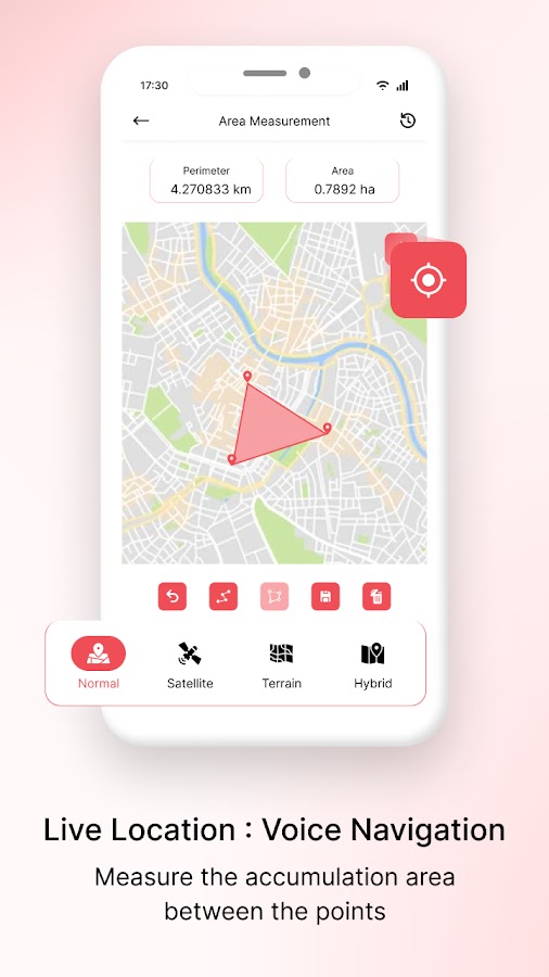 🌏 Калькулятор площади. Нарисуйте или закрепите на карте области для измерения с помощью голосовой GPS-навигации по спутниковой карте;