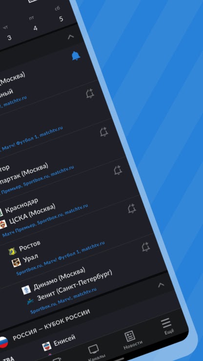 Используйте удобный календарь с подробным расписанием матчей во всех основных соревнованиях, чтобы заранее планировать просмотр интересующих вас поединков. Приложение предлагает доступ к полным спискам официальных и проверенных трансляций, а также позволяет отслеживать результаты в реальном времени, просматривать составы команд, статистику и текстовые онлайн-репортажи.