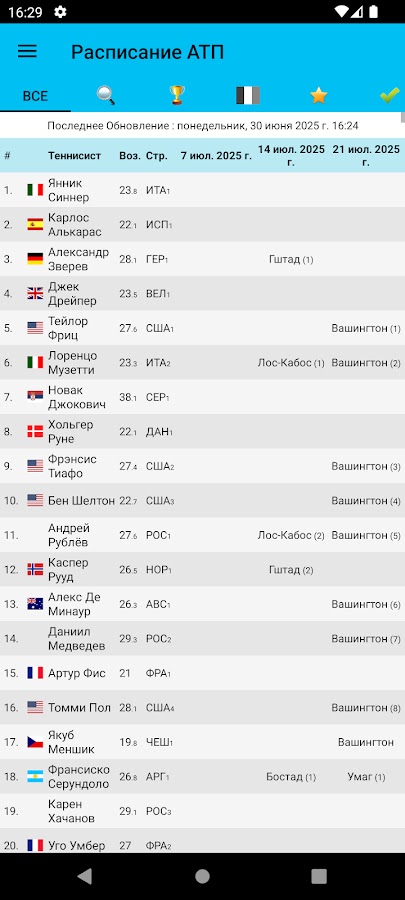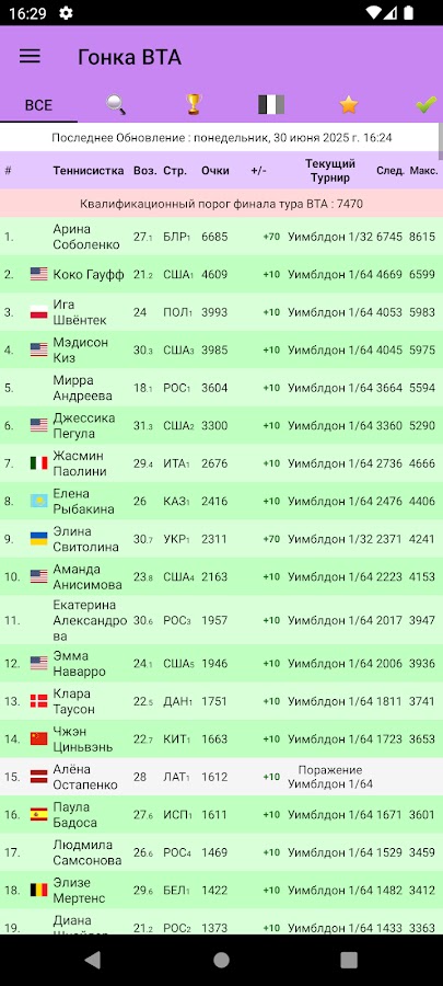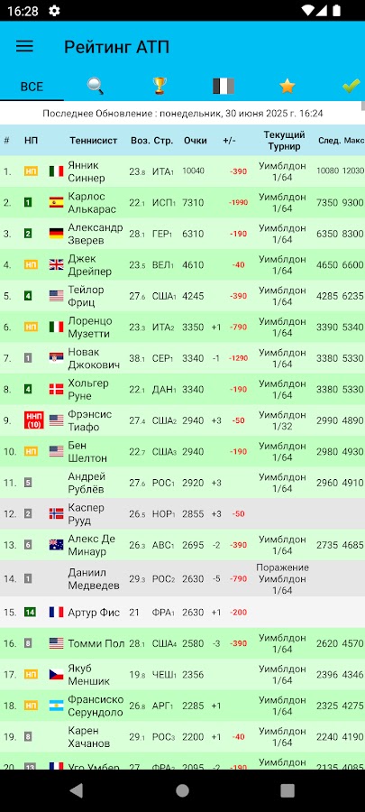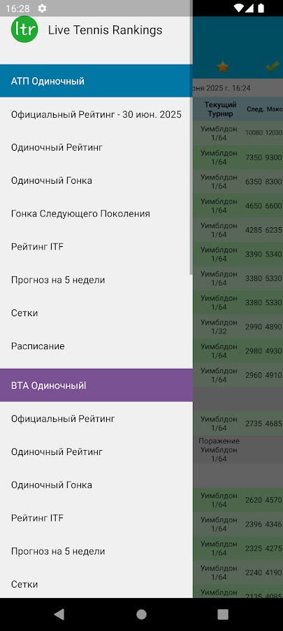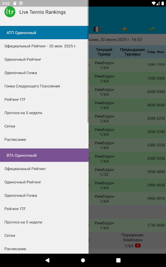 Описание Live Tennis Rankings / LTR