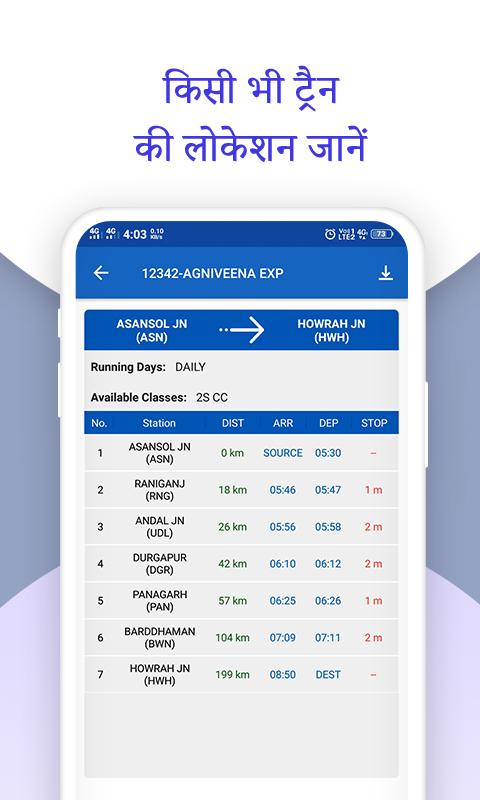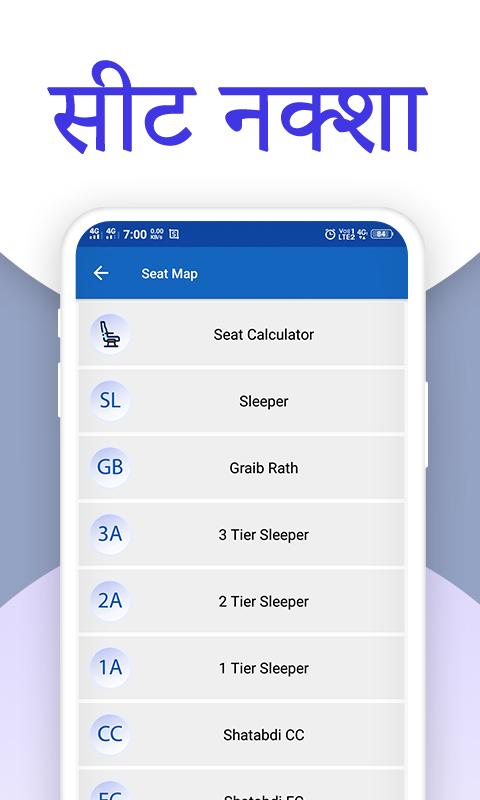 В этом приложении «Статус поезда в реальном времени и запрос о поезде» вы можете узнать карту мест всех классов, экспрессы Радждани и Гариб Рат, поезда Ян Шатабди, вагон-кресло Шатабди, поезда Дубл Декер. Калькулятор количества мест также доступен для точного определения вашего положения сиденья. Вы можете сохранить расписание поездов для автономного использования одним щелчком мыши, и ваше расписание будет сохранено для вашего поезда.