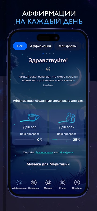 Скачайте приложение Аффирмации: сон и медитация для Android бесплатно - последняя версия (15.2.2) уже доступна для установки на ваш телефон или планшет.