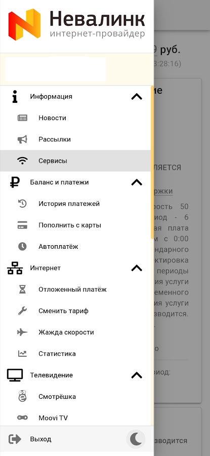Приложение создано для абонентов оператора Невалинк и позволяет управлять подключенными услугами, оставлять обращения в техническую поддержку, совершать обратный звонок и многое другое