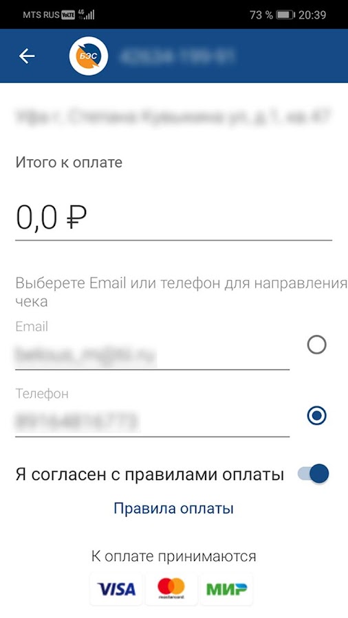 Если Вы зарегистрированы в Личном кабинете на сайте Башэлектросбыт, для входа в приложение Вам достаточно использовать указанный Вами при регистрации номер телефона или e-mail и пароль.