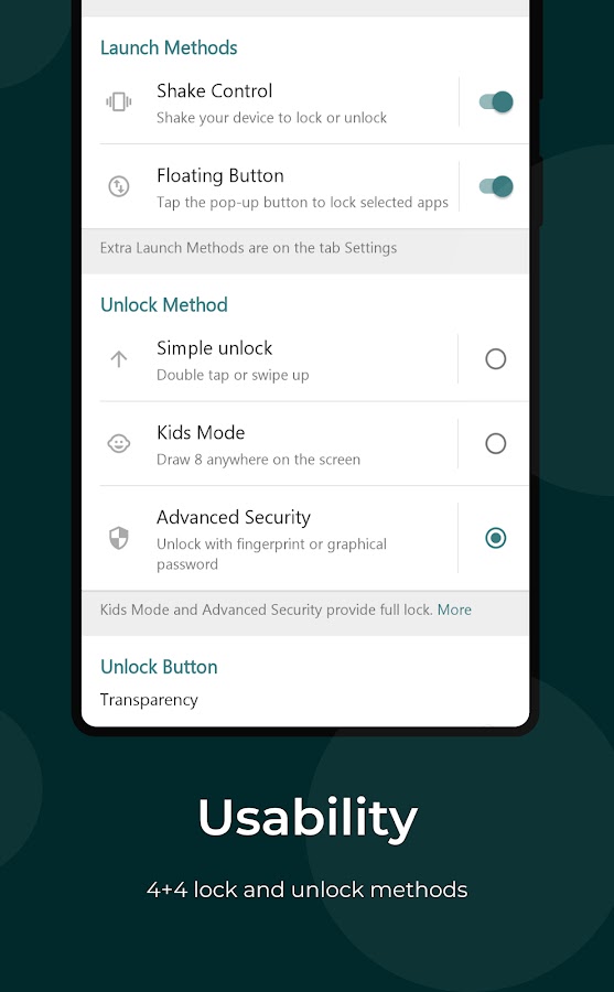 4 умных режима блокировки легко управляют отключением сенсорного экрана и кнопок в играх для малышей, во время звонка, при просмотре YouTube. Быстрый запуск одним нажатием или встряхиванием подходит для различных типов устройств: для смартфонов, планшетов и даже умных часов.
